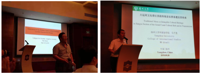 会议伊始,王金铨院长介绍了学术演讲的报告人和主要到场嘉宾,并对每位报告人的演讲进行了简要评述。田德新教授介绍了加拿大里多运河的历史源头、社会功能演变和当代利用,并对里多运河文化遗产生态旅游走廊项目的有益经验进行了系统梳理。马千里博士从大运河江苏段的地理位置和非物质文化遗产的概念入手,介绍了大运河江苏段传统音乐类非遗的艺术与文化特点,以及该类非遗具有代表性和借鉴价值的传承模式。