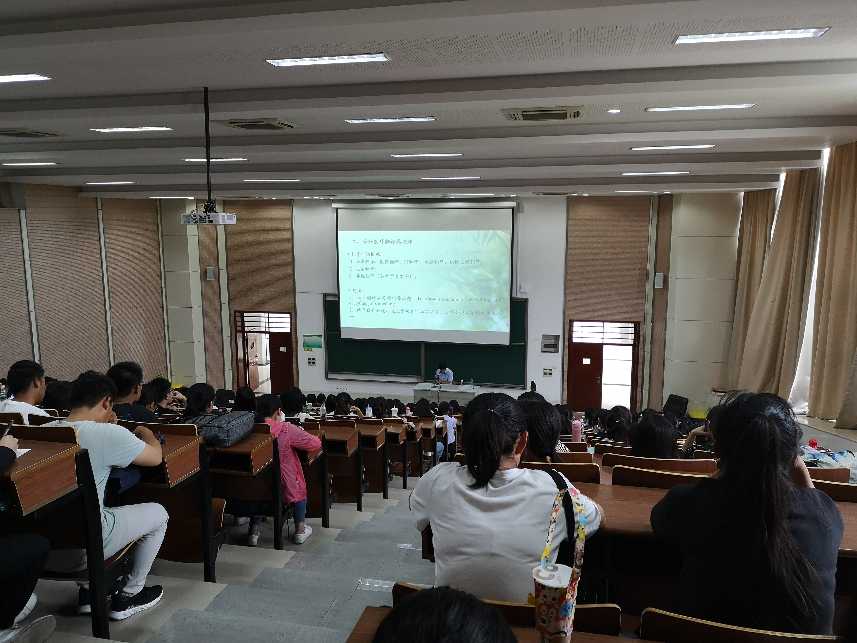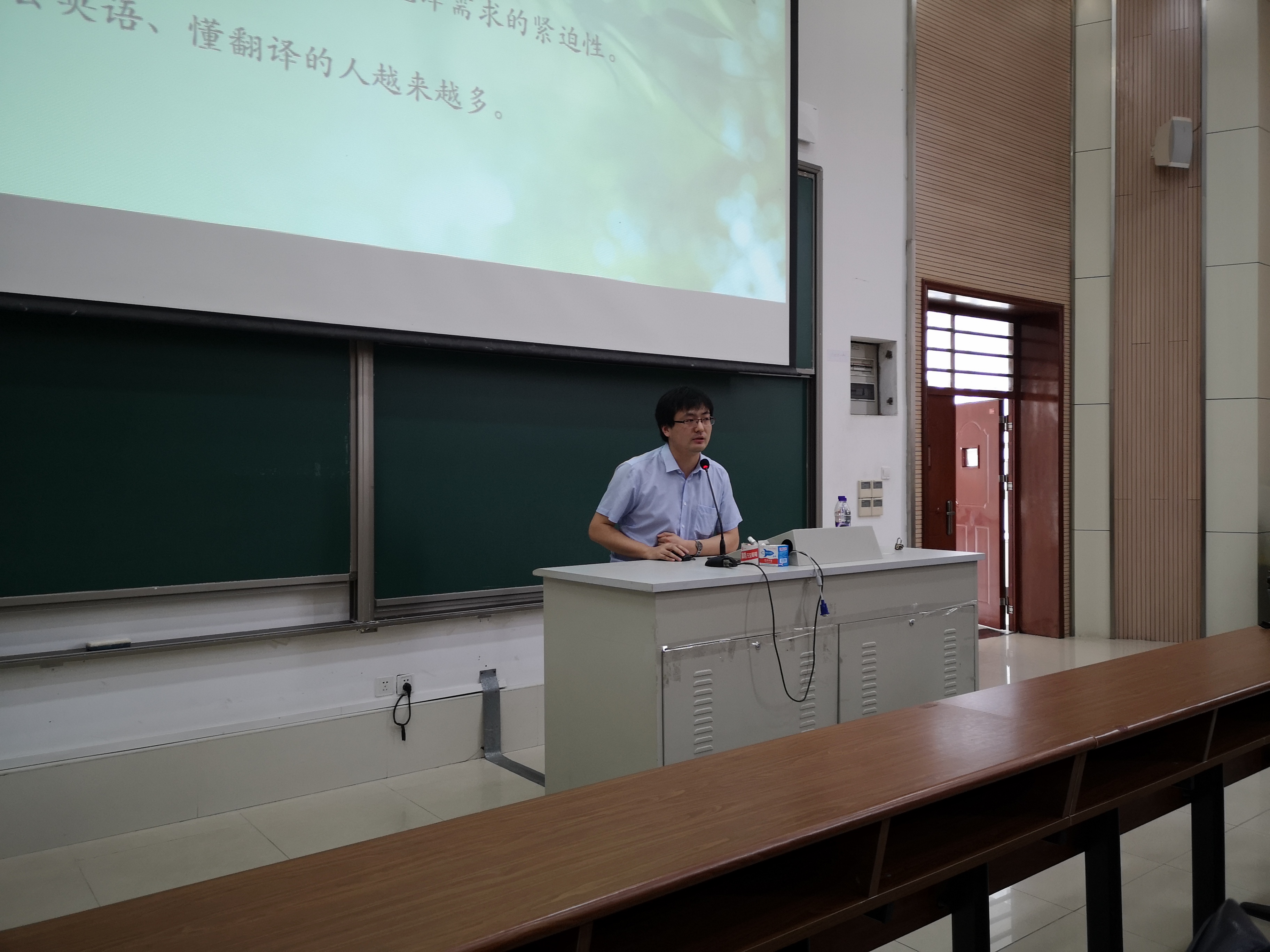 9月25日下午,我院翻译系2014届优秀校友薄兵兵应邀回母院做了题为“职业医药翻译技能训练及研究”的报告,翻译系主任刘猛博士主持了报告会,19级英语专业本科生、翻译专业全体师生、全院研究生共200余人参加了活动。