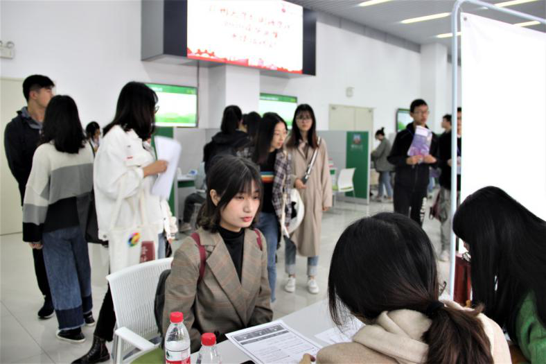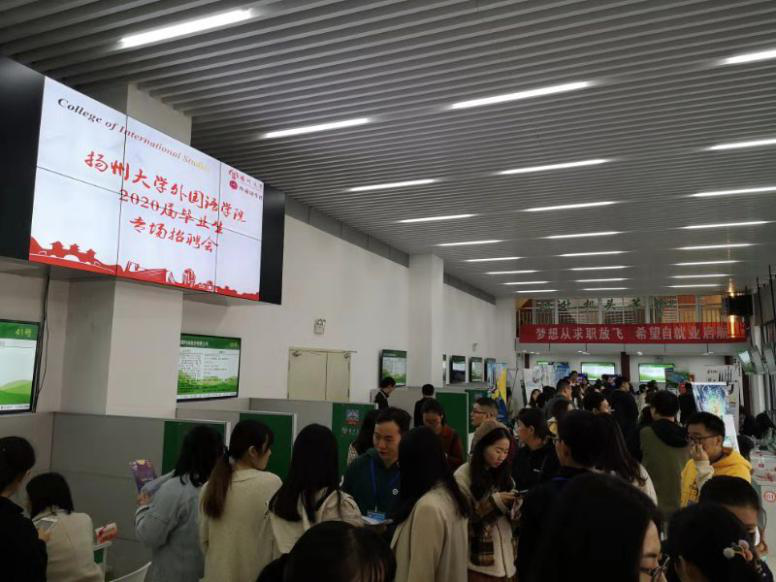 为努力实现我院毕业生更高质量和更充分就业,11月17日上午,外国语学院在扬子津校区文体馆一楼招聘就业大厅举办2020届毕业生专场招聘会暨校企合作恳谈会。院党委书记赵春丹,校就业指导中心主任、学生工作处副处长陈轶群,就业指导中心副主任李敏,院党委副书记毛连军,副院长、教硕18班主任杨晓春,院团委书记刘芳玮,院综合办公室副主任孙月,辅导员宋超、邢枫及毕业班班主任到现场指导毕业生求职,了解毕业生及用人单位需求。