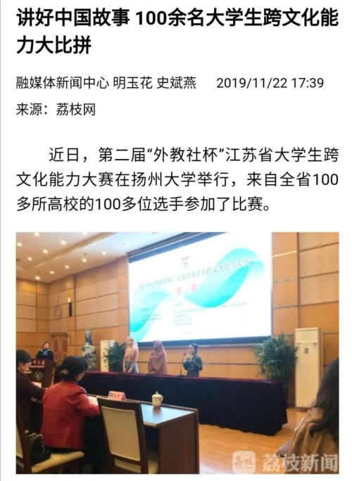 11月20日,第二届“外教社杯”江苏省大学生跨文化能力大赛在扬州大学成功举行,来自江苏省内本科院校及高职院校的在读中外参赛学生、指导教师、评委专家共约150人参加了大赛。