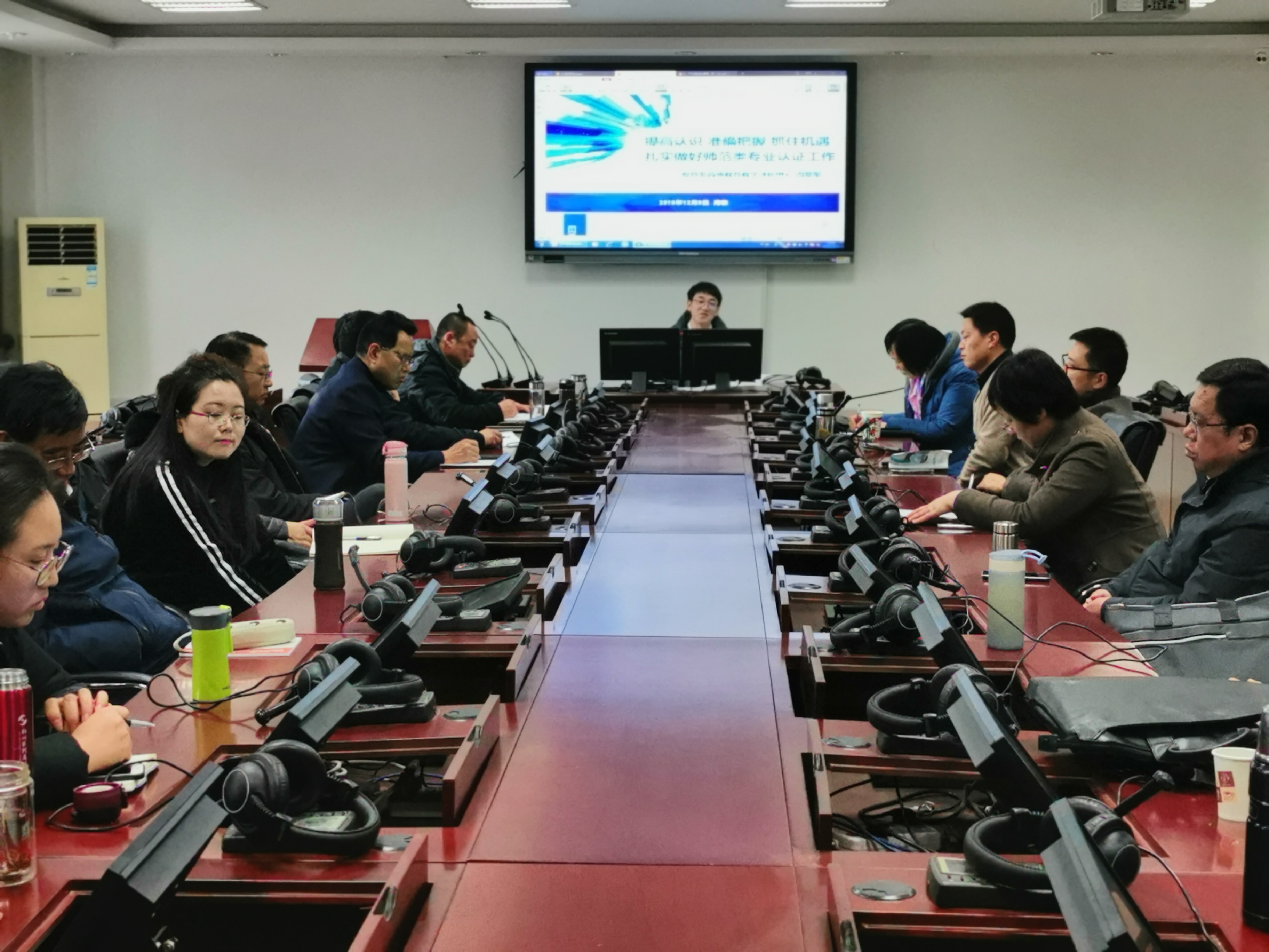 12月11日下午,学院在笃行楼同声传译室举行英语师范专业认证推进动员会。赵春丹书记主持,全体院领导、各一级指标负责人、相关专业教师及工作人员参加了会议。