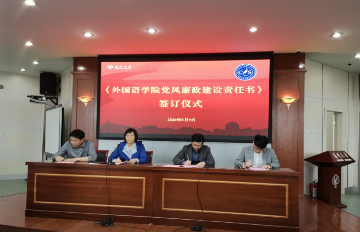 会上,根据学院党风廉政责任网络,责任人与责任对象现场签订了《外国语学院党风廉政建设责任书》。