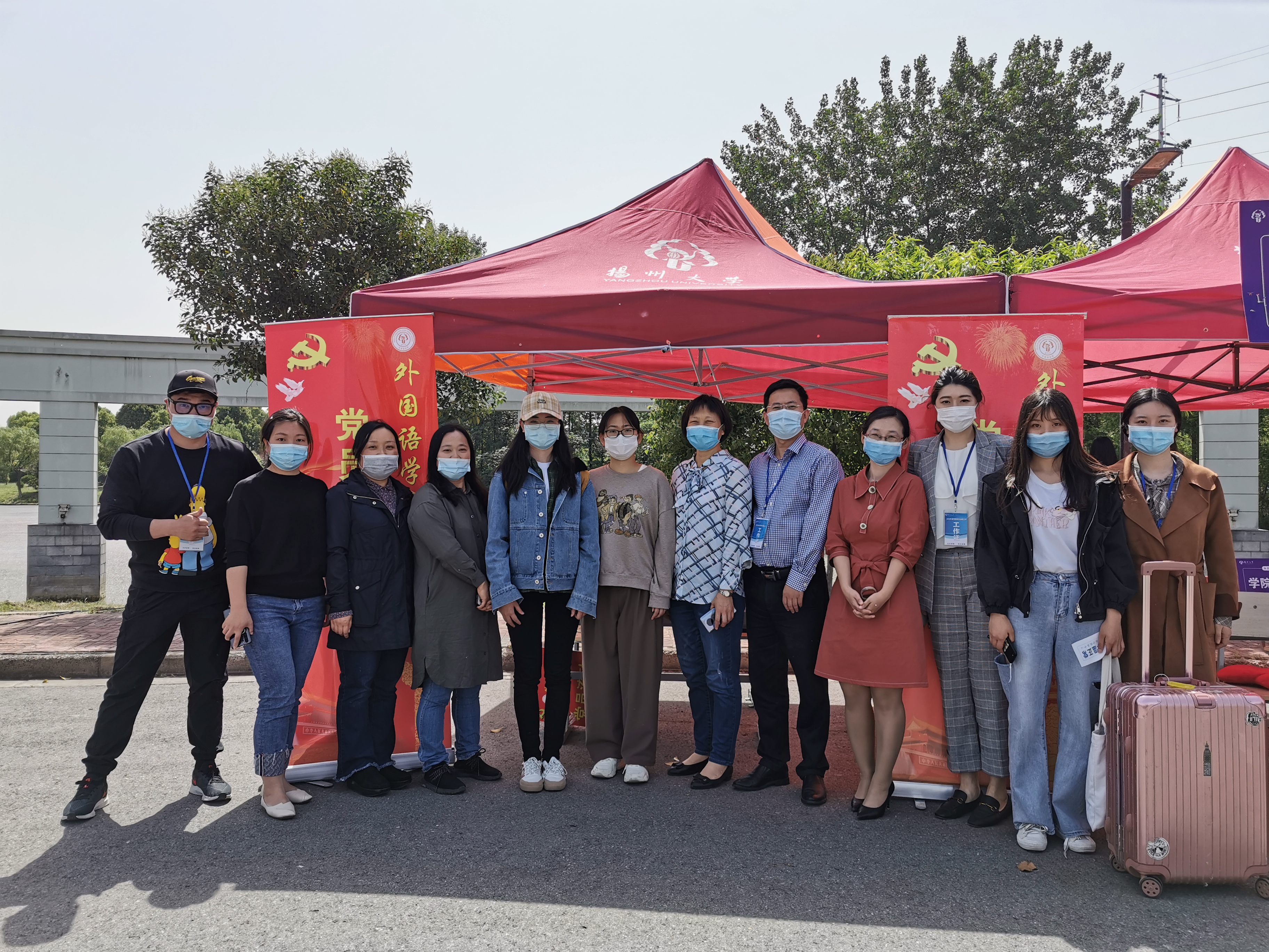 外国语学院的师生也早早做好了充分的准备,迎接返校学生的到来,同时学院依然设立了“党员服务流动站”,以便更好地服务同学。醒目的红色海报下,专业教师第二党支部的党员教师志愿者们一早便在学院报到处等候。当第一位返校学子到来,他们一边热忱地送上问候,一边帮同学接过行李,同学看到自己的专业老师、班主任一下子倍感亲切。外国语学院党委书记赵春丹老师也来到现场问候回校的学子:“回校过程还顺利吗?有什么困难可以及时告诉我们哦。”老师们关切的话语驱散了学子旅程的疲惫。