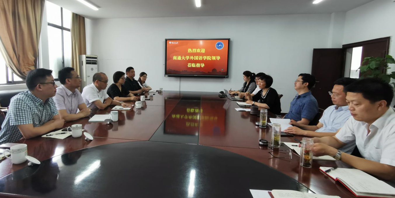 7月6日,南通大学外国语学院院长、党委副书记陆国君,党委书记朱小娟,党委副书记、副院长陈俊怀,副院长佘军,副院长徐托,学院专员施皓,综合办主任陈晓霞,学工办主任、团委书记王媛媛一行来我院调研交流,全体院领导出席,院办、院团委相关人员参加。
