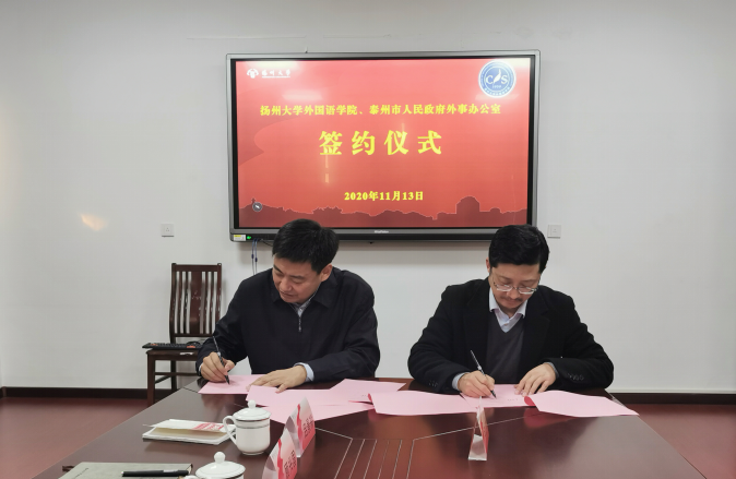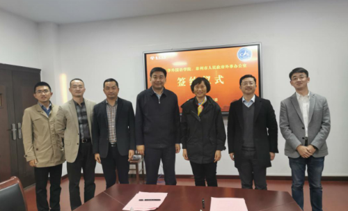 双方深入探讨了高校人才培养与地方外事工作的合作项目,张兆洋主任、王金铨院长分别代表双方签订《共同建立外语实践教学与实习基地的合作协议》。