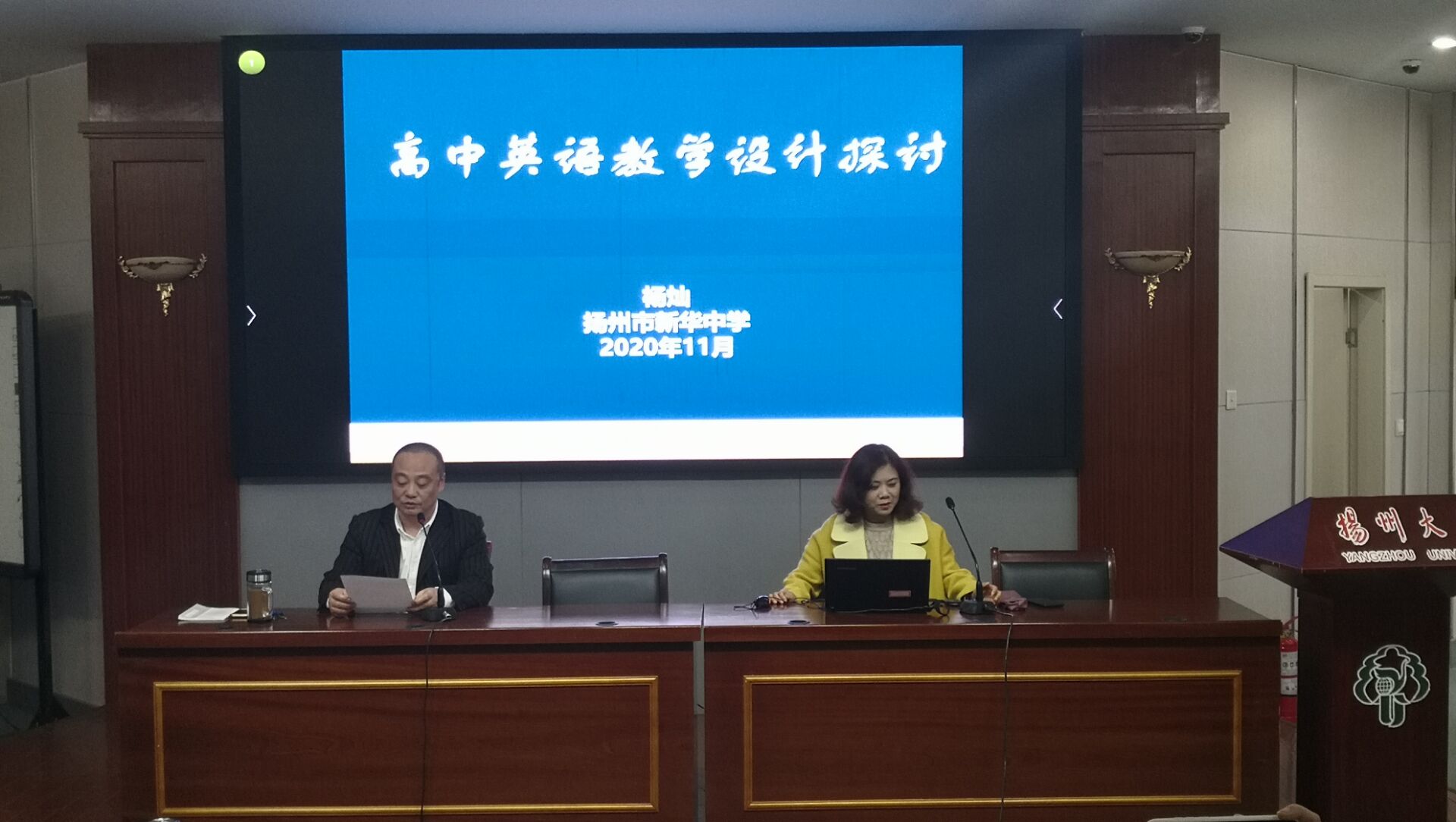 为进一步增强英语师范生的专业素养,提高广大师范生的教学演练水平,2020年11月20日下午,学院荣幸邀请到扬州市新华中学英语教研组组长杨灿老师前来为英语师范专业的学生开设主题为“高中英语教学设计探讨”的讲座,我院英语教育系系主任陶竹老师主持此次讲座。