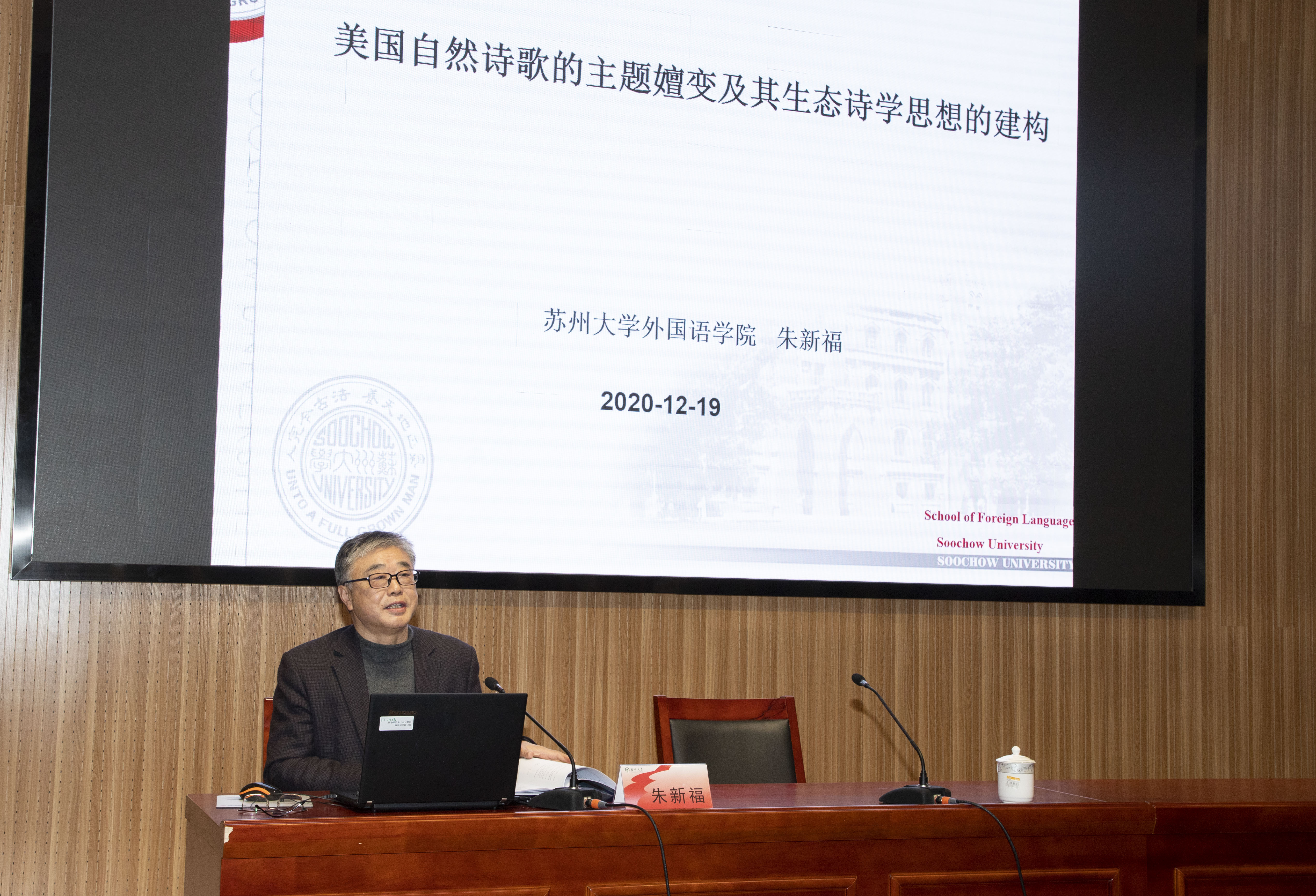 本次学术创新论坛特别邀请南开大学张文忠教授、南京大学陈新仁教授、苏州大学朱新福教授、河北师范大学李正栓教授分别作了题为“外语教学创新研究选题”“文献综述部分的常见问题与对策”“美国自然诗歌的主题嬗变及其生态诗学思想的建构”“诗歌翻译是艺术”的专题讲座。