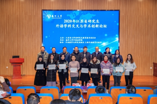 12月19-20日,2020年江苏省研究生外语学科交叉与学术创新论坛在扬州大学成功举行,来自江苏、安徽、辽宁三省各高校外语学科博硕士研究生、带队教师以及特邀讲座专家共约140人参加了论坛。