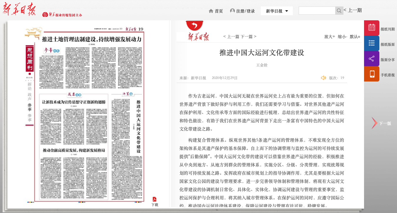 12月29日,我院王金铨教授撰写的《推进中国大运河文化带建设》在新华日报《思想周刊》发表。