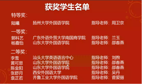 2021“爱未来杯”全国高校英语写作同伴互评教学大赛近日落下帷幕。我院周卫京教授指导的学生团队中,英教1803陆曦同学荣获特等奖、英教1801王雨萱同学荣获三等奖。