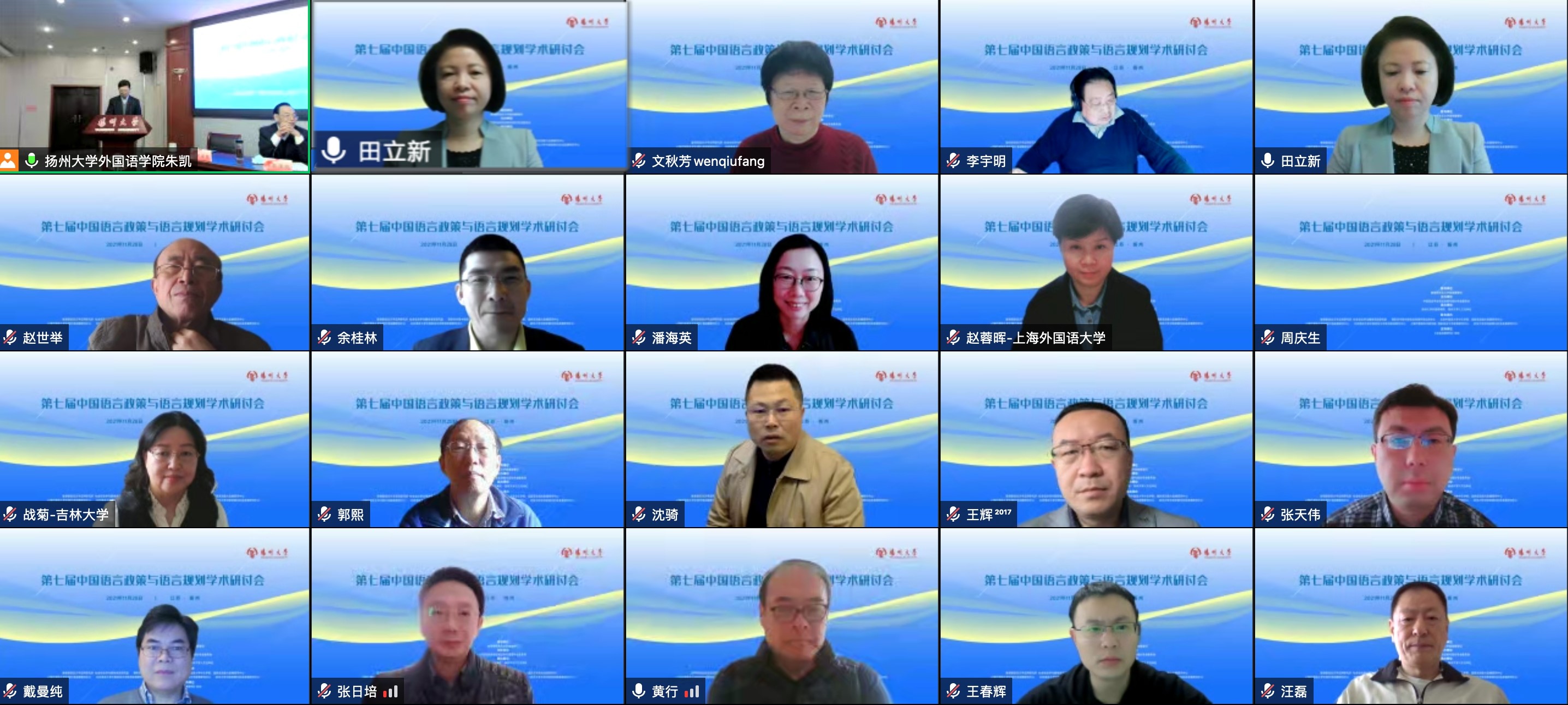 11月28日,由教育部语言文字信息管理司指导,中国语言学会语言政策与规划专业委员会主办,由扬州大学外国语学院和扬州大学人文社科处承办的“第七届中国语言政策及语言规划学术研讨会”在线上成功举办。