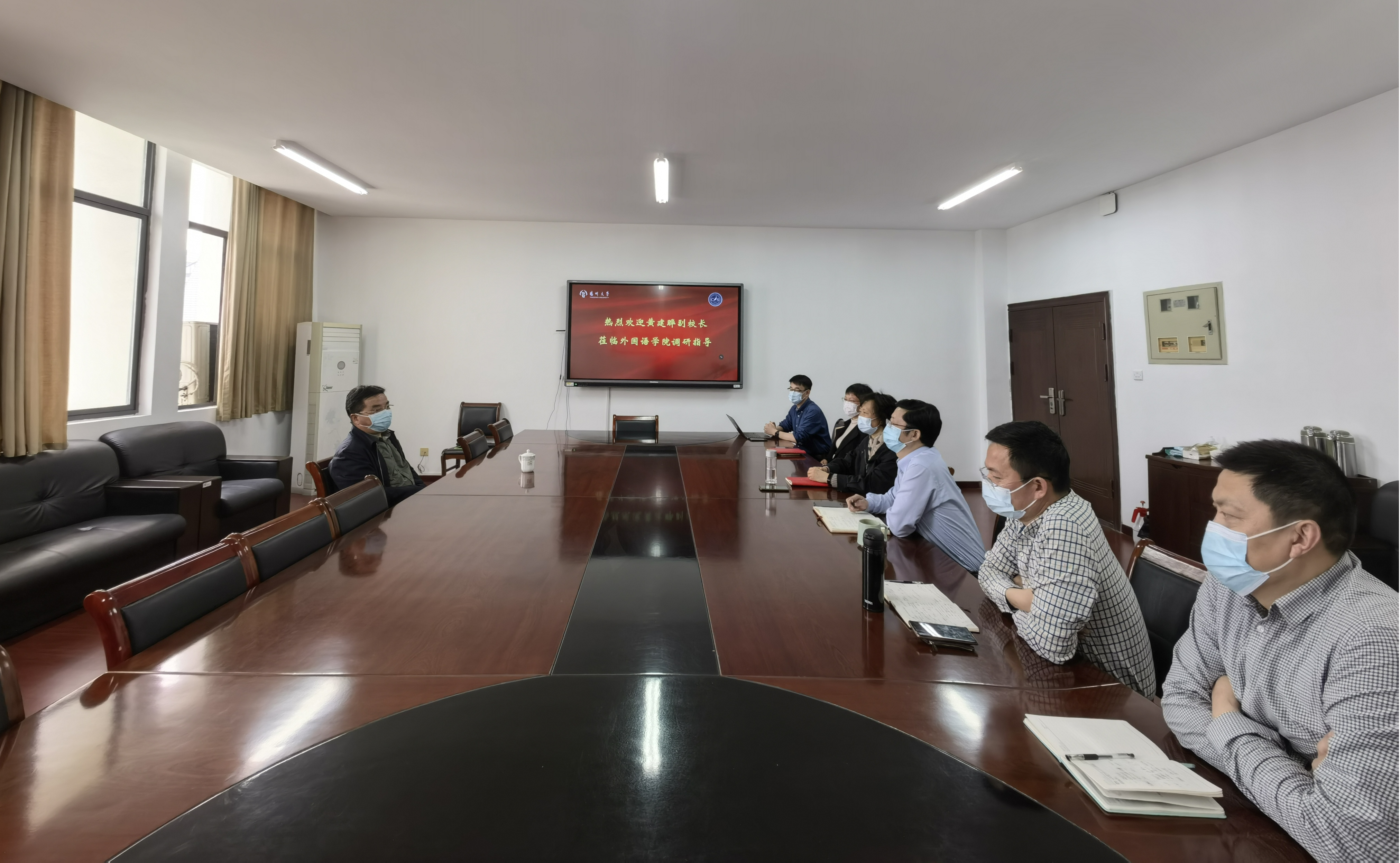 黄校长充分肯定了学院事业发展所取得的成绩。他指出,当下要全力抓好疫情防控工作,织密织牢网络化防控体系,严格校园封闭管理,坚持人、物、环境共防,做到守土有责、守土尽责;二是要稳定教学秩序、保证教学质量,强化疫情防控期间线上教学的监督检查,在专业建设、课程建设、教学团队建设等方面再下功夫;三是要继续推进内涵发展、特色发展、创新发展,围绕外国语言文学一级学科博士点建设,进一步做好顶层设计和统筹规划,培育打造高层次、高质量成果。他希望大家共同努力、团结奋进,加快建设高水平教学研究型外国语学院,以更加饱满的热情和更加优异的成绩,迎接120周年校庆和党的二十大的胜利召开。