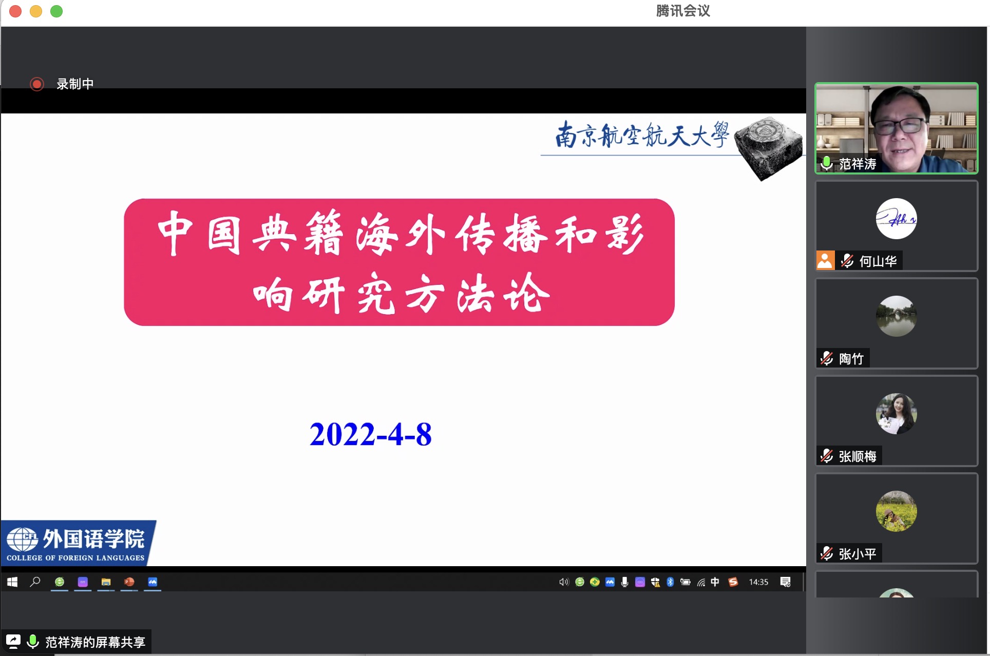 4月8日下午,南京航空航天大学外国语学院院长、江苏高校外语教学研究会副会长、江苏省翻译协会副会长范祥涛教授应邀为我院师生做了题为“中国典籍海外传播和影响研究方法论”的线上讲座。讲座由王金铨院长主持,共计200余名校内外师生在线参加讲座。
