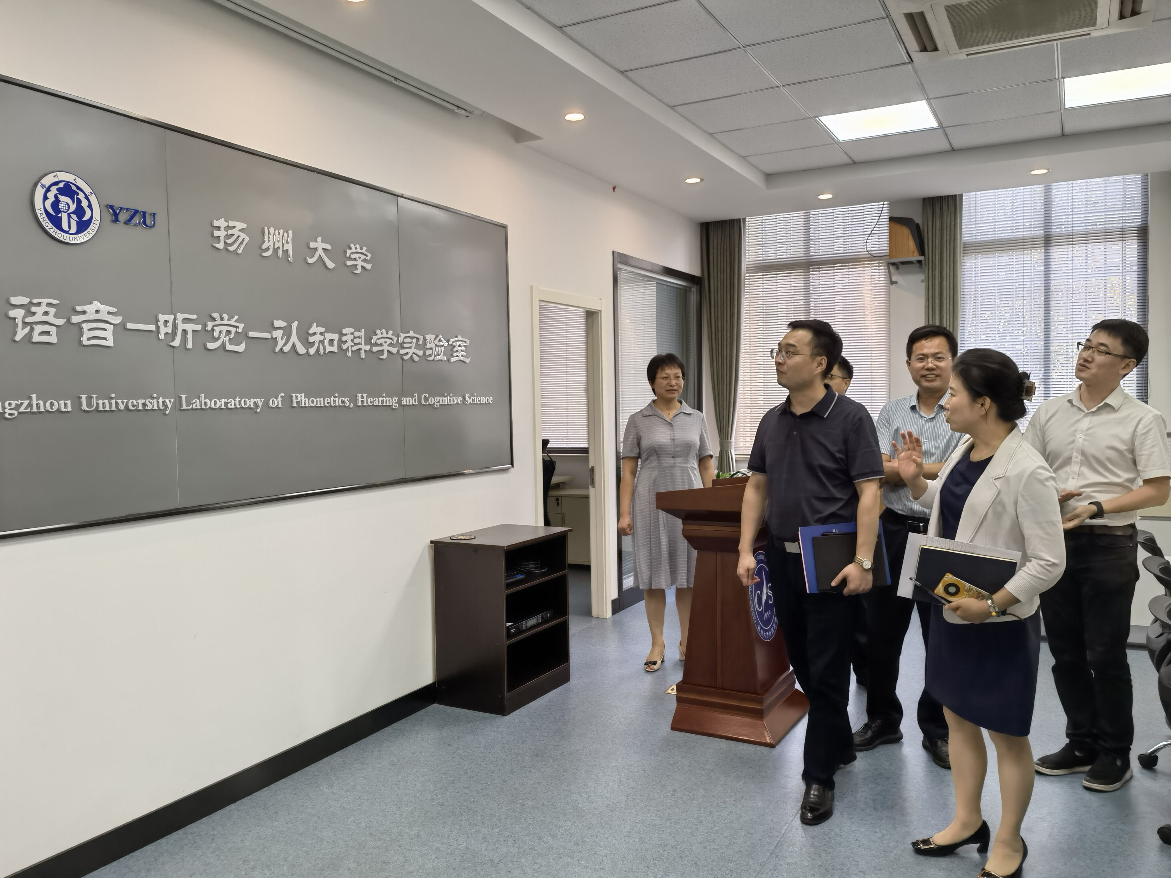 蔡颖蔚强调,外国语学院要始终坚持品牌发展、特色发展和创新发展,进一步在专业特色、人才培养、实践教育、创新教育、学科交融上下功夫,为学生成人成才提供更好的培养机制和教育教学环境。最后,蔡颖蔚一行还实地查看了我院语音-听觉-认知科学实验室等教学实验平台。