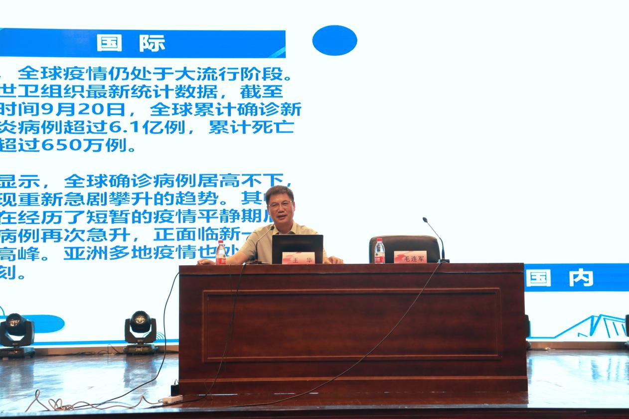 王华以“‘疫’线有我,‘青’尽全力——学生干部的责任担当”为题,鼓励青年学生干部完成自我角色过渡,做出应有的贡献。他强调,在疫情大考中学生干部应充分培养、不断提升自身的综合素质,发挥好老师和学生之间的桥梁与纽带作用。