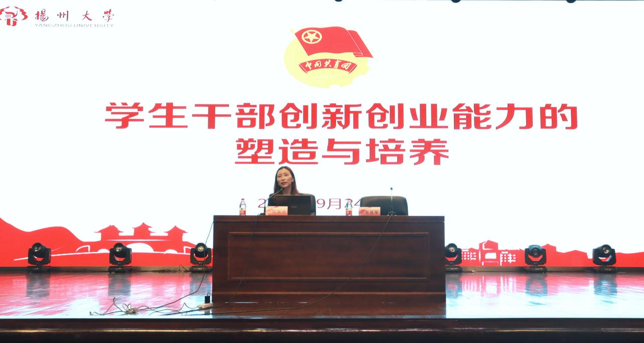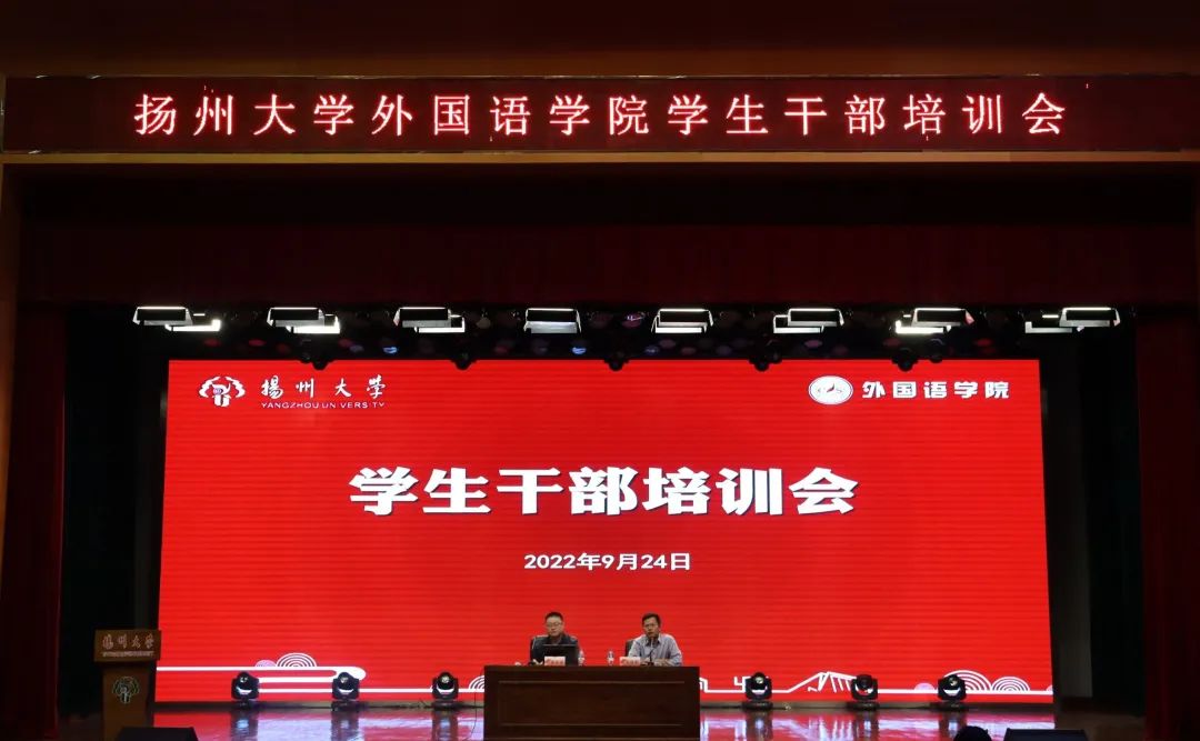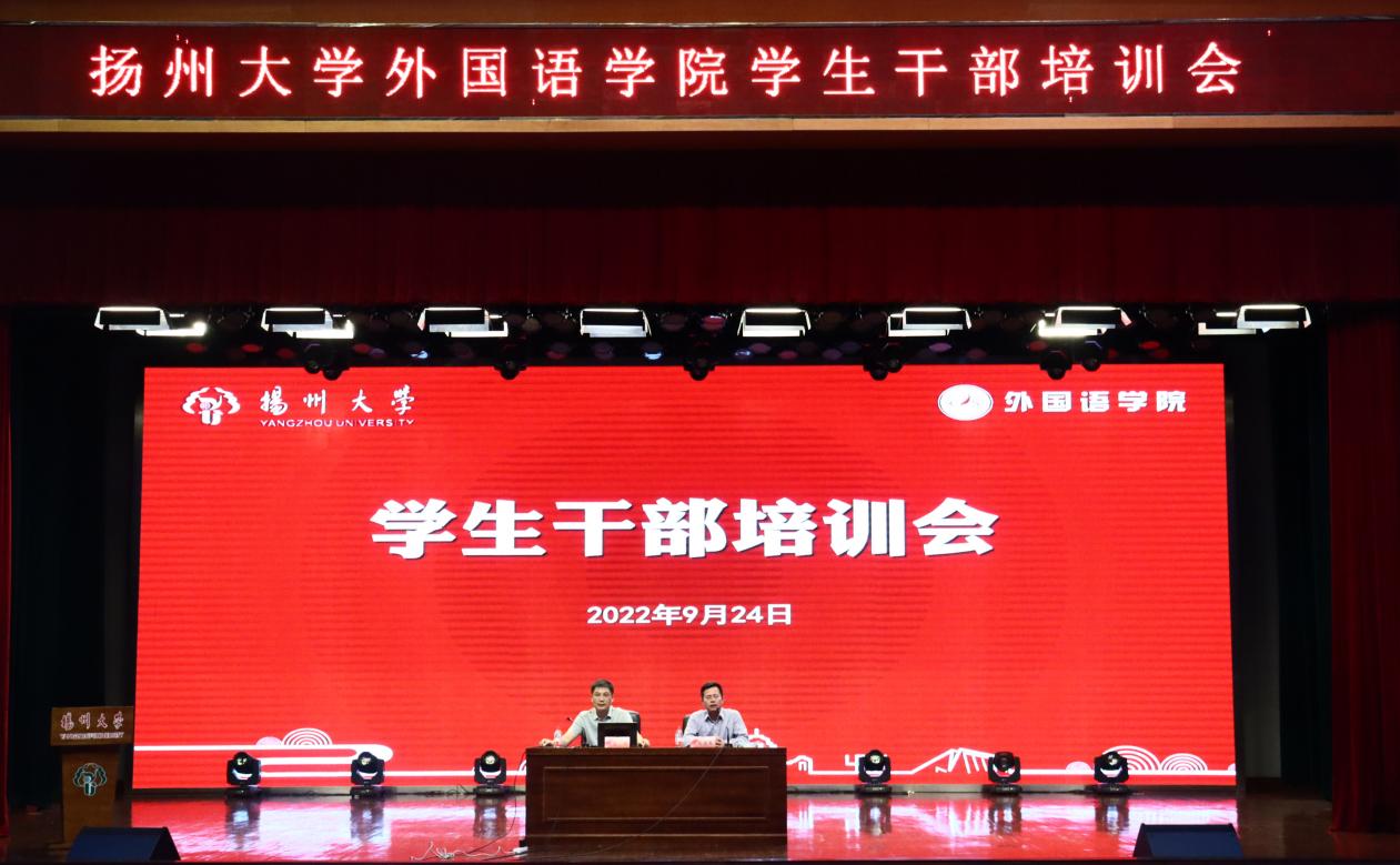 9月24日下午,我院在文体馆三楼小剧场举办学生干部培训会。学院邀请校团委书记陈佩沛、学生工作部(处)副部(处)长王华、扬州报业传媒集团团委书记葛学涛为同学们进行培训。培训会由院党委副书记毛连军主持。学院各学生组织、各班级主要学生干部参加培训。