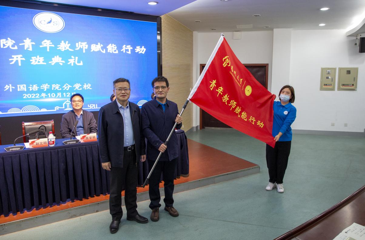 10月12日下午,我院青年教师赋能行动开班典礼在扬子津校区笃行楼举行。副校长赵文明出席活动并为青年教师代表授旗。