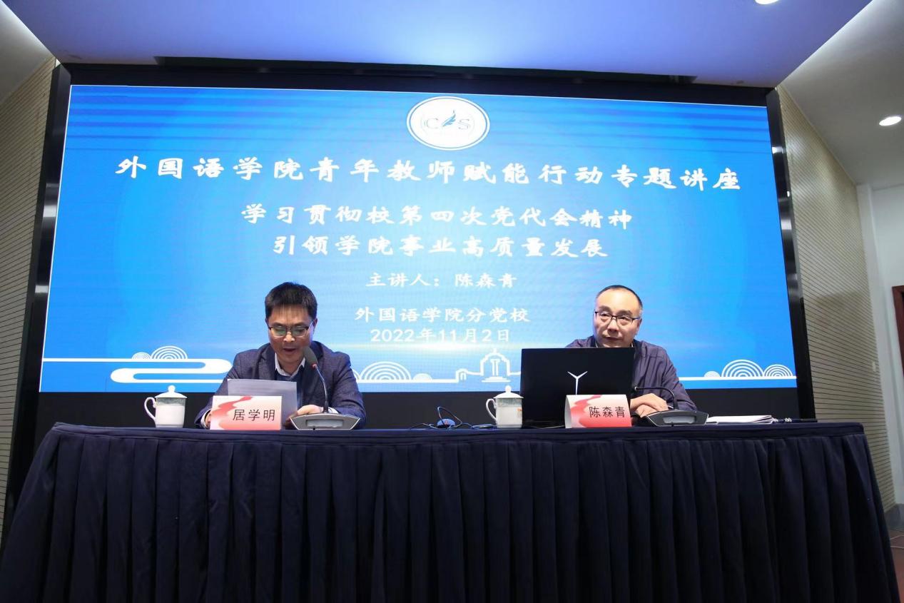 陈森青详细解读了校第四次党代会党委报告原文,总结回顾了学校过去五年中事业发展取得的突出成就,阐述了在新甲子新征程上的发展规划,并结合外国语学院实际,指明了发展目标与前进方向。