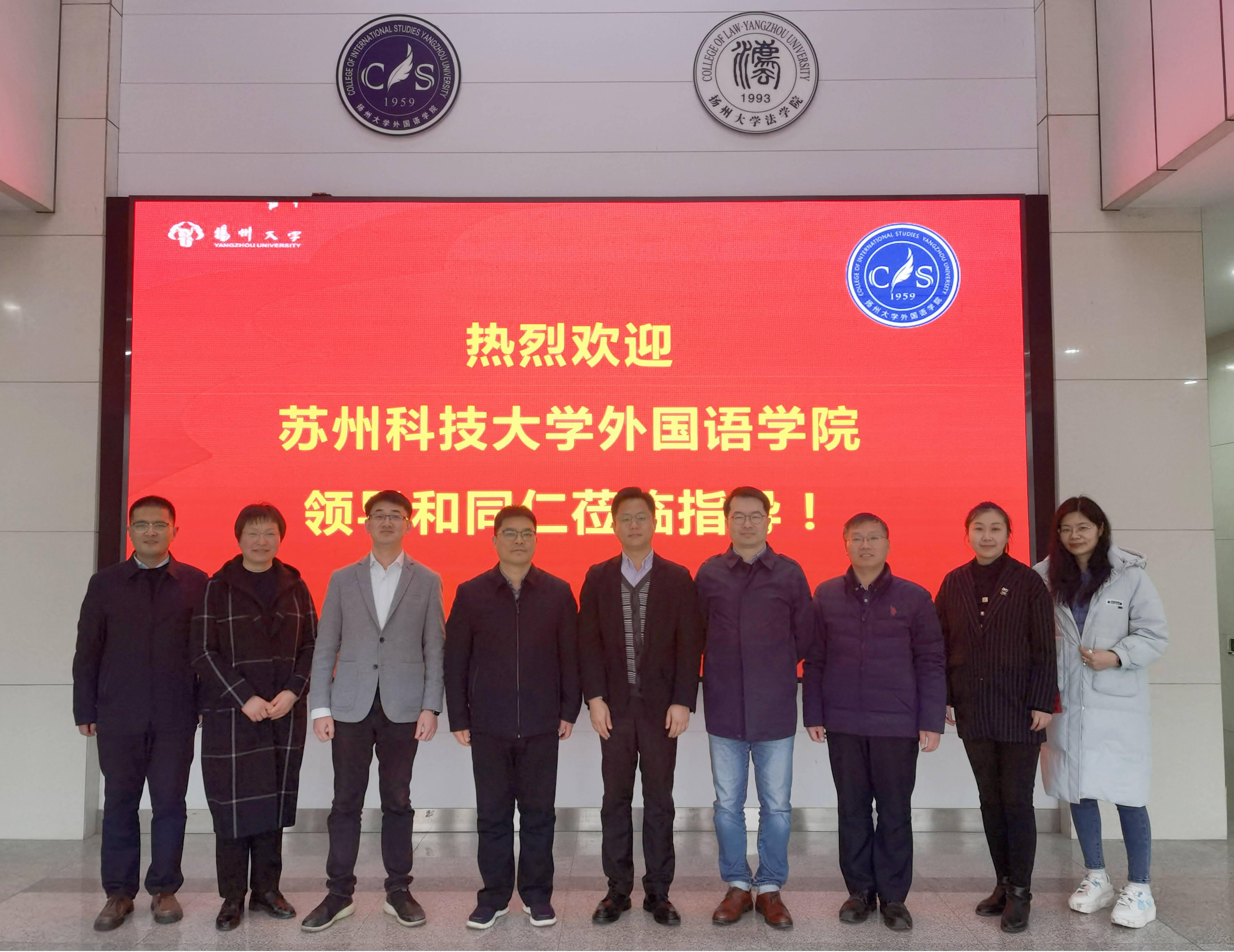 2月28日,苏州科技大学外国语学院党委书记姚之彦、副院长(主持工作)綦亮、副院长刘新芳、院长助理郭雯、英语系副教授杨洪艳等一行来我院调研交流。我院全体院领导出席活动,院办相关人员参加。双方围绕党建品牌创建、英语(师范)专业认证、国家一流专业建设、学科建设、人才培养、科学研究等内容进行了深入热烈的交流和讨论。