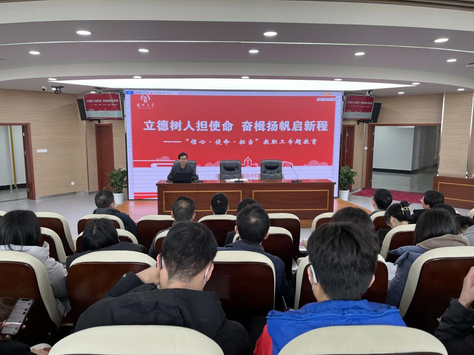 会上,王晖做了题为“立德树人担使命 奋楫扬帆启新程”的教职工专题教育,从厚植家国情怀、教育情怀和扬大情怀三个方面展开,上好2023年春学期教职工开学第一课。