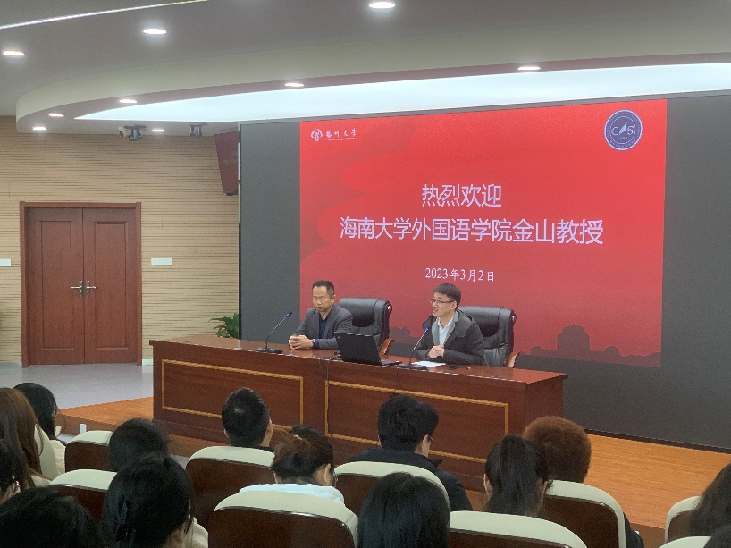 2023年3月2日下午,海南大学外国语学院院长、博士生导师金山老师应邀为我院师生开展了题为“日本近代文献中的海南岛:边缘、前沿、中心”的学术报告。副院长何山华(主持工作)主持,学院300余名教师、研究生和日语专业学生参加。