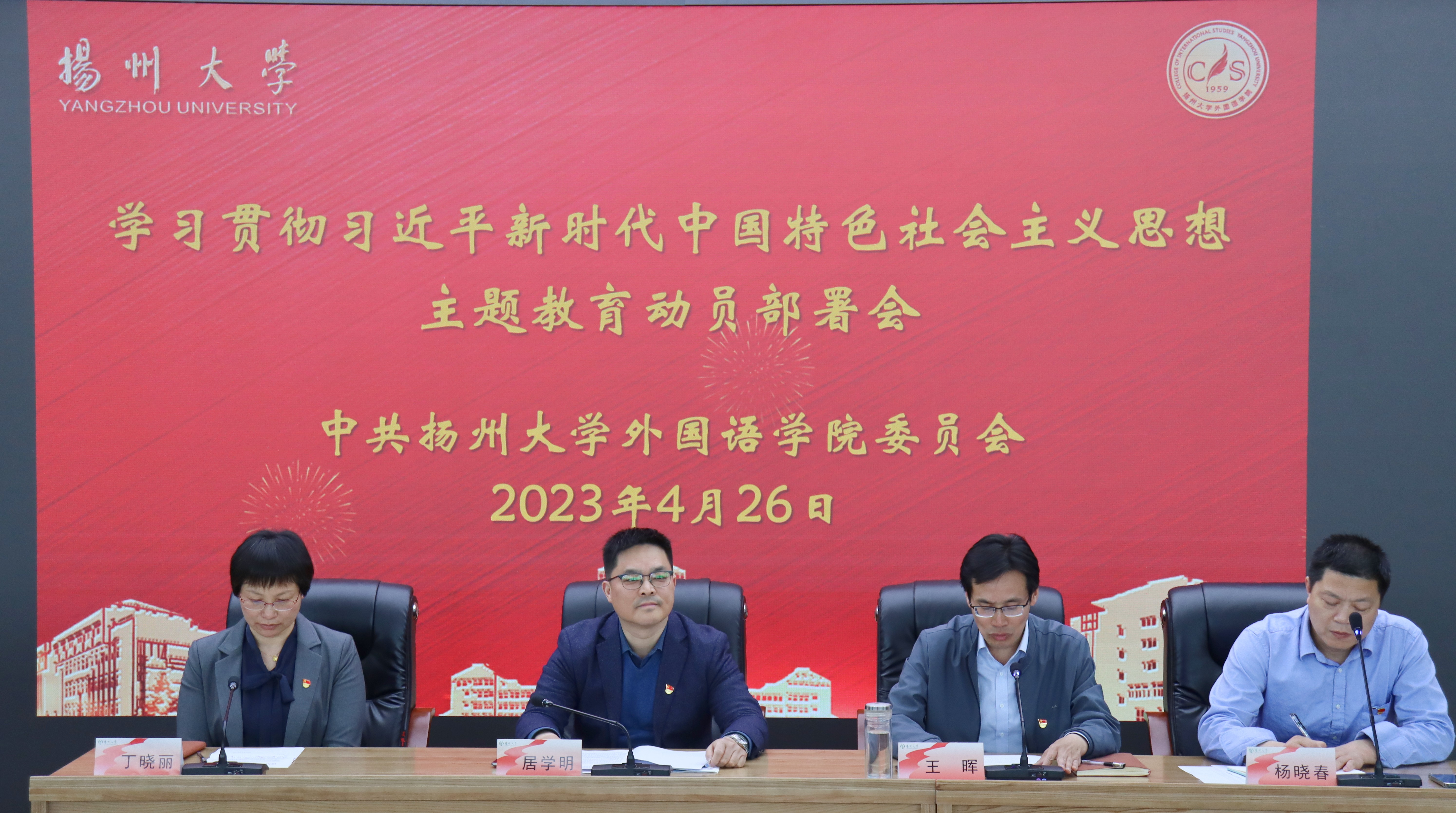 4月26日,外国语学院在笃行楼四楼报告厅召开学习贯彻习近平新时代中国特色社会主义思想主题教育动员部署会。院学习贯彻习近平新时代中国特色社会主义思想主题教育领导小组全体成员出席会议,院党委副书记王晖主持会议。
