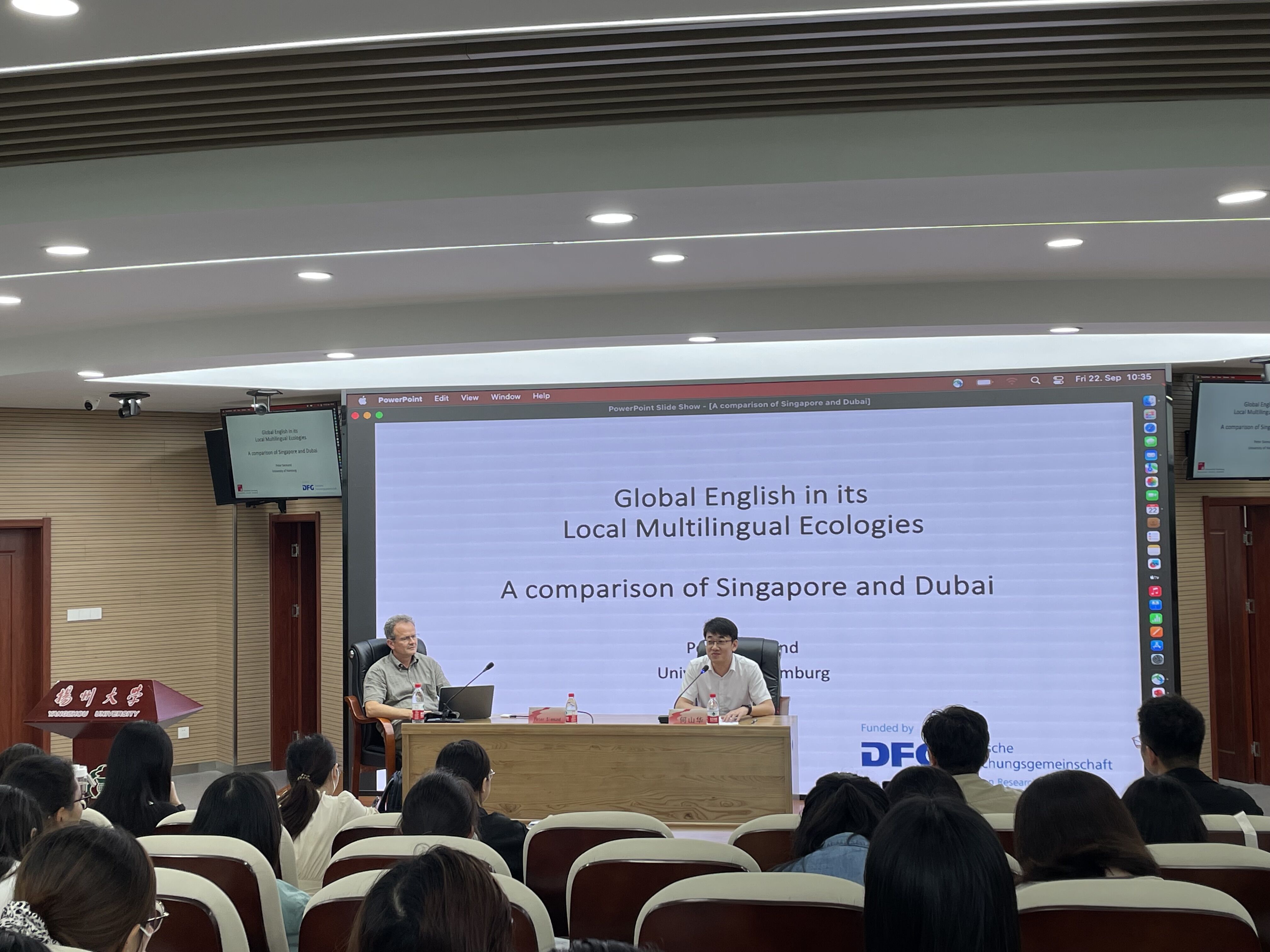 9月22日下午,汉堡大学Peter Siemund教授应邀为我院师生做了题为“Global English in its Local Multilingual Ecologies: A comparison of Singapore and Dubai”的讲座。本次讲座在笃行楼报告厅举行,由副院长(主持工作)何山华主持,学院一百余名师生参加。