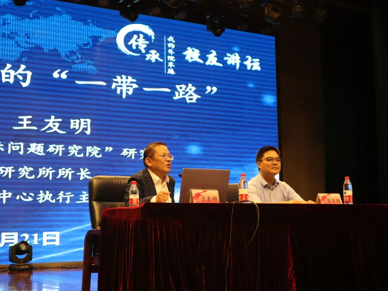 9月21日下午,外交部智库“中国国际问题研究院”研究员、发展中国家研究所所长、中国亚非研究中心执行主任王友明校友应邀为我院师生作“中国大国外交中的‘一带一路’”专题讲座,讲座由院党委书记居学明主持。