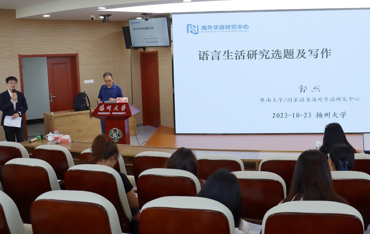 10月24日下午,暨南大学教授、博导,国家语委海外华语研究中心主任郭熙老师应邀为我院师生做题为“语言生活研究的选题及写作问题”的专题讲座。讲座由副院长(主持工作)何山华主持,学院近两百名师生参加。