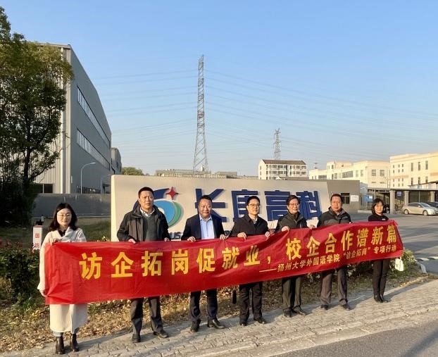 为深入贯彻落实教育部“访企拓岗”促就业专项行动,落实毕业生就业工作“一把手”工程,深化校企合作,加强供需对接,全力促进学院毕业生更加充分更高质量就业,2023年11月24日至25日,外国语学院党委书记居学明、副院长杨晓春、原副院长于建华、原院长助理张荣根、大学英语教学三部副主任陈丹丹及就业辅导员张晓慧一行赴无锡多家企业开展访企拓岗专项行动,深入了解行业发展情况,对接企业用人需求。学院一行先后实地调研走访了江南模塑科技股份有限公司、无锡迈纳德微纳技术有限公司、江阴长庚高科技材料有限公司。