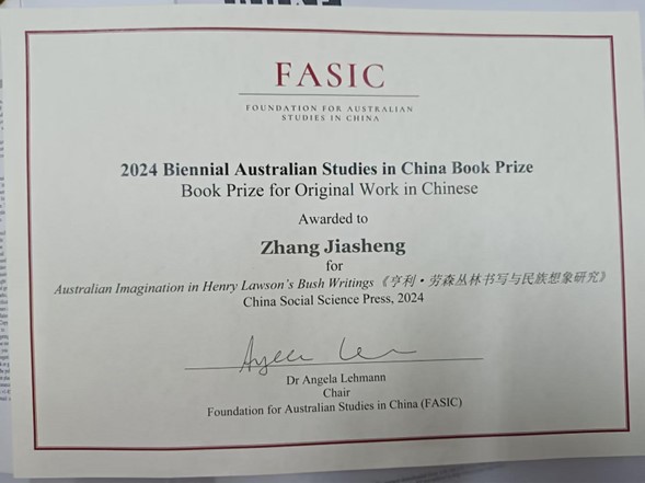 2024年10月3-6日,第10届中澳跨文化研究论坛和第9届FASIC(澳中研究基金会)学术研讨会在澳大利亚西悉尼大学举行。会上,我院张加生教授的研究著作《亨利·劳森丛林书写与澳大利亚想象研究》获得第9届澳中研究基金会中国图书奖。