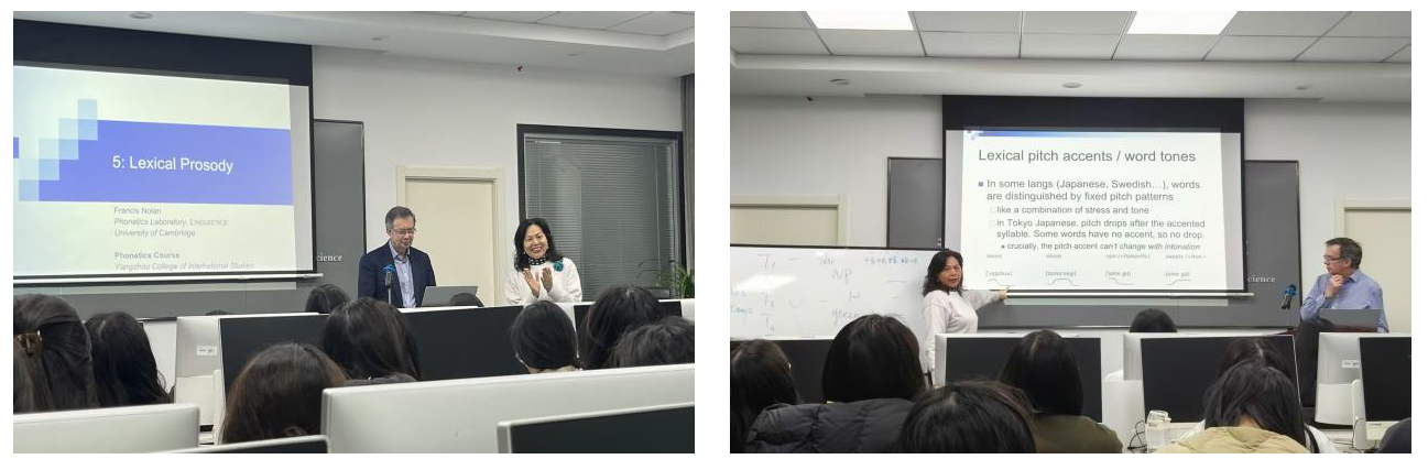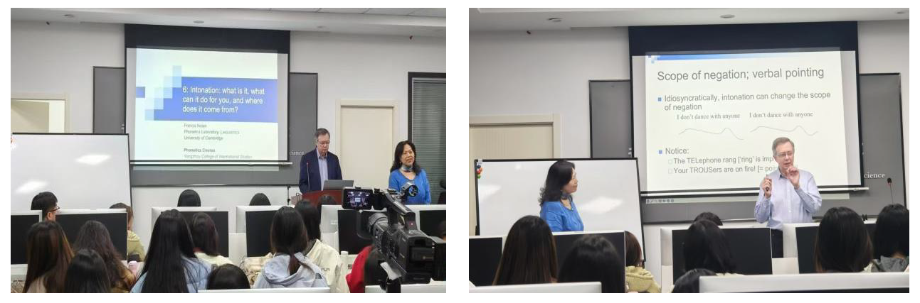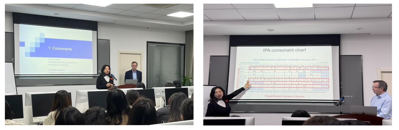 11月26日至12月10日,由英国剑桥大学国际著名语音学家Francis Nolan教授与我校语音-听觉-认知科学实验中心主任周卫京教授联合讲授的国际联合精品课程群《语音科学》之基础模块《普通语音学》在我院圆满结束。