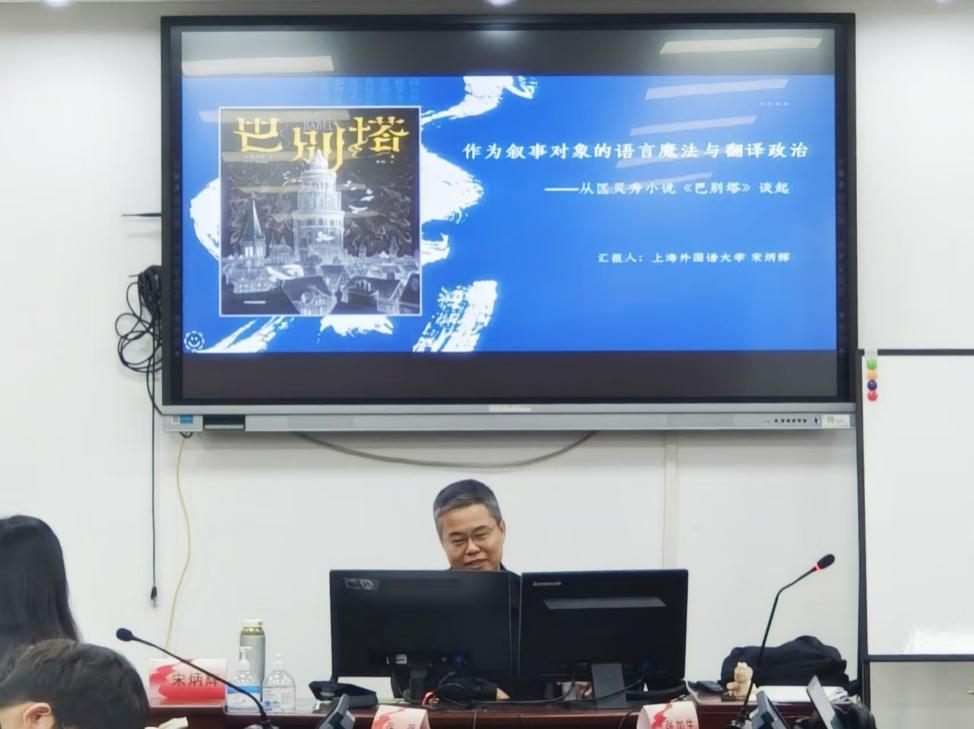 4月1日下午,中国著名比较文学研究学者、上海外国语大学宋炳辉教授应邀为我院师生作了题为 “作为叙事对象的魔法语言、翻译政治与民族命运——从匡灵秀的《巴别塔》谈起”的学术讲座。讲座由何山华院长主持,近50余名师生聆听了讲座。