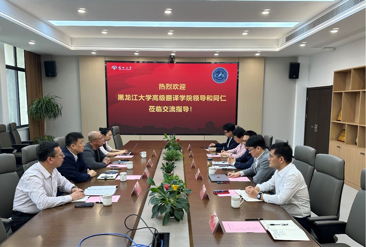 4月21日,黑龙江大学原副校长、高级翻译学院学术委员会主任严明教授,黑龙江大学高级翻译学院党委书记吴继锋、院长孙超等一行到访我院,开展调研交流活动。我院党委书记居学明、院长何山华、副院长丁晓丽、副院长张强出席,综合办相关人员参加此次活动。