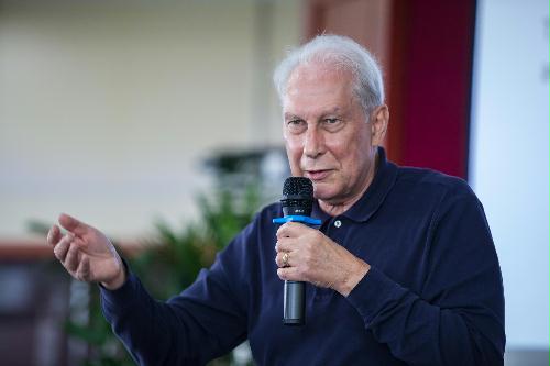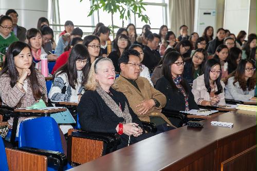 1112下午,国际认知语言学会前任主席、国际著名认知语言学家、德国汉堡大学教授Dr. Panther在外国语学院报告厅做了题为Antonymy in language structure and use的学术讲座。Panther教授的讲座分为四个部分:总括、反义的含义、反义在纵聚合轴以及横聚合轴中的运用。Panther教授通过语言中反义应用的实例,讲解了语言结构和语言使用中的反义现象,介绍了反义词的对立观点以及在纵聚合轴和横组合轴的反义关系,并通过X and Y alike 这一结构,表示出X,Y的反义关系和适用的范围。Panther教授的讲座幽默通俗,分析精辟,使在场师生获益匪浅、倍受启发。