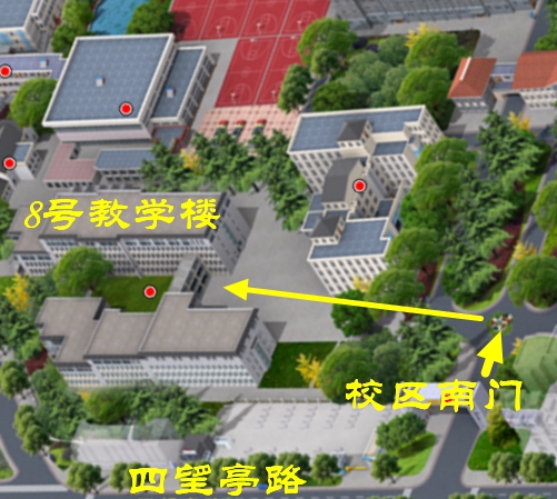 考生从瘦西湖校区南门进入校园,进校后沿路向左前方100米即可抵达8号教学楼,该路线便捷且标识清晰。